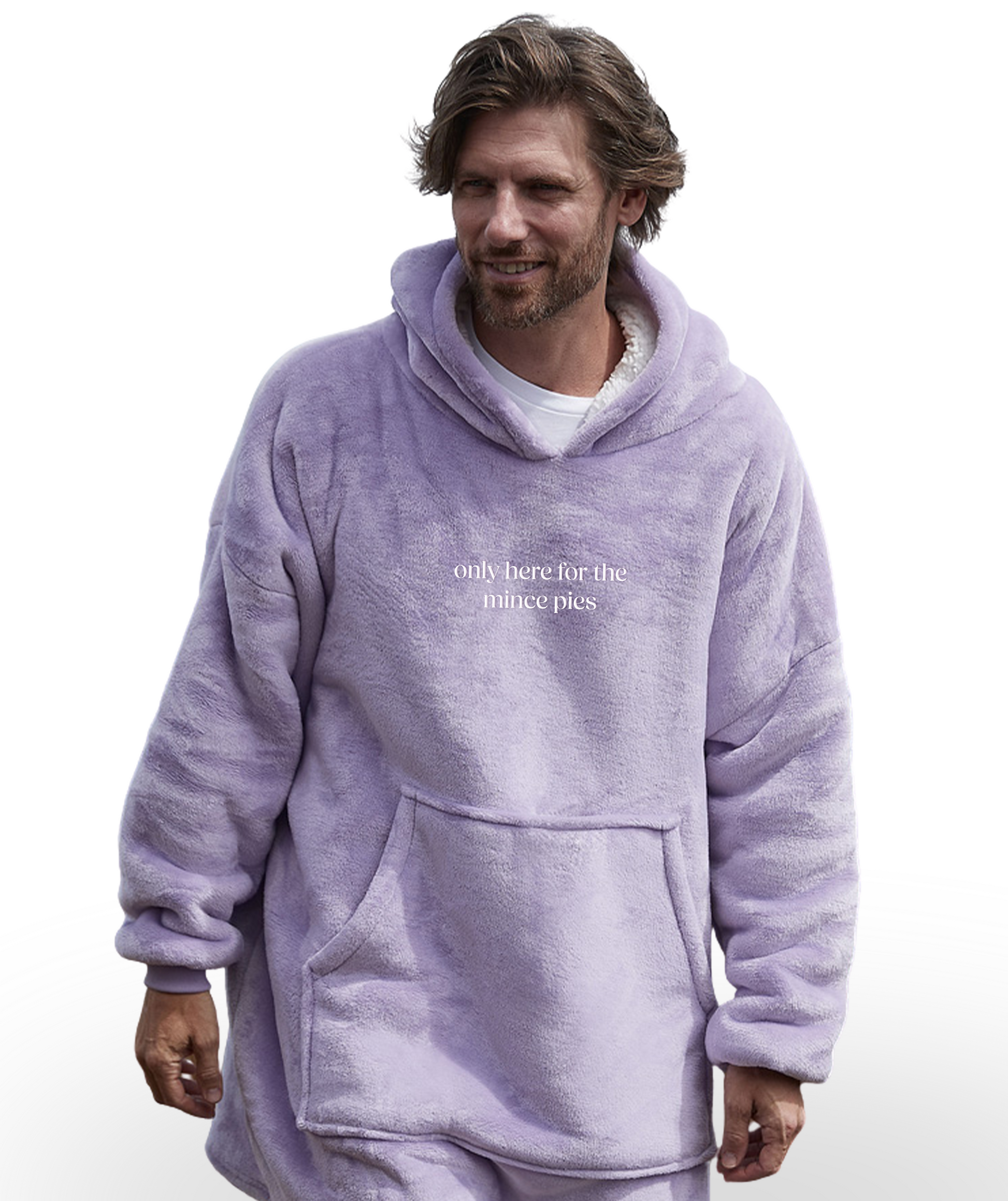 Festive, fun, and full of cheer. This personalised Christmas hooded blanket is the ultimate way to stay cozy all season long. Whether it’s snuggling up for a movie night, unwrapping gifts, or just showing off your love for all things merry, this oversized essential is embroidered with the playful phrase “Only here for the...” — perfect for adding a little humour to your holiday wardrobe.